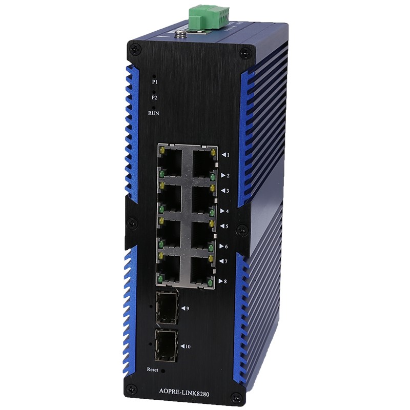 AOPRE-LINK8280 | 2個千兆光+8個千兆自適應(yīng)電口、SFP接口、DC12-52V供電-寬溫(-40℃-85℃) |
