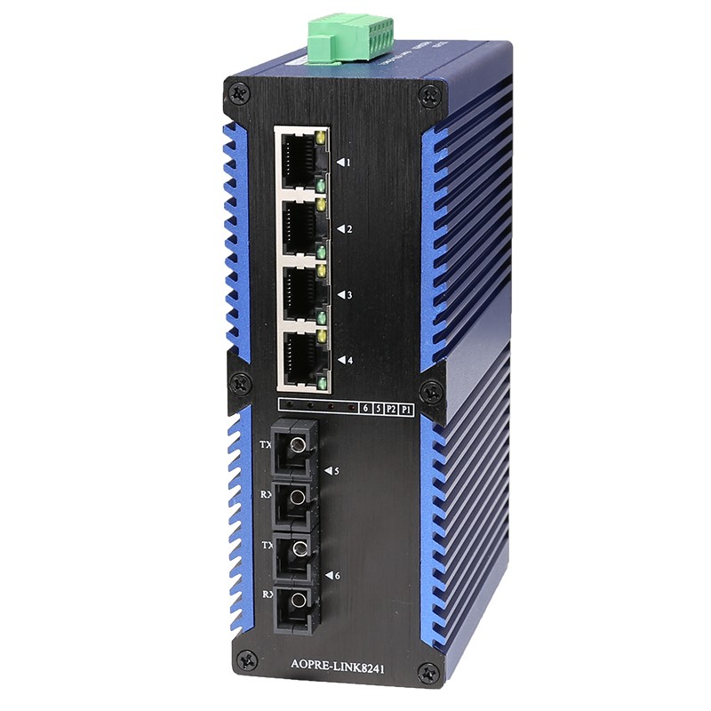 AOPRE-LINK8241 | 百兆2光4電、SC接口、多模雙纖、導軌式、DC12~57V供電 | 0-2公里 |